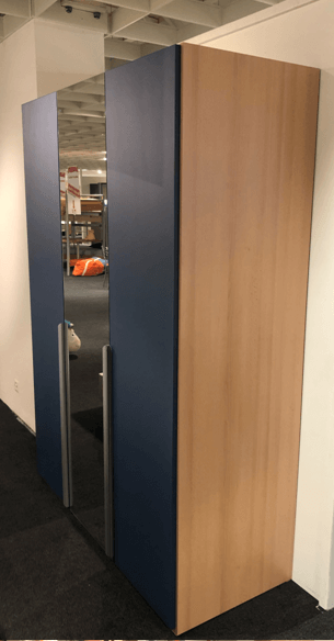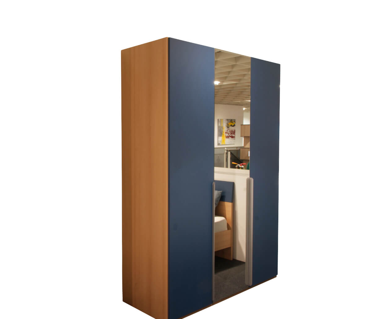 Armoire 3 portes, en imitation hêtre, faces Seablue, poignées profilées en alu