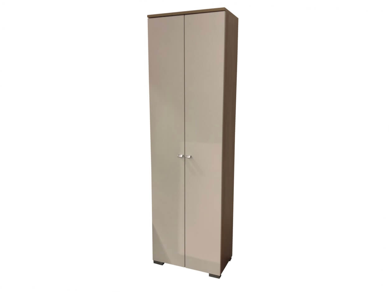 Armoire 2 portes, corps en imitation chêne Bardolino, deux faces blanches mat, poignées standard