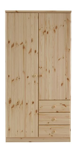 Armoire 2 portes et 3 tiroirs, bois pin massif laqué nature