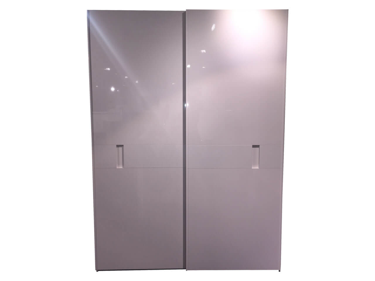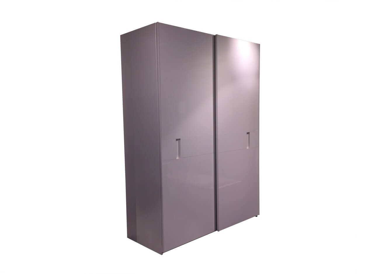 Armoire 2 portes coulissantes faces blanc brillant, corps d'élément blanc mat, intérieur du corps gris structuré, poignées couleur blanche, inclus kit d'amortisseurs