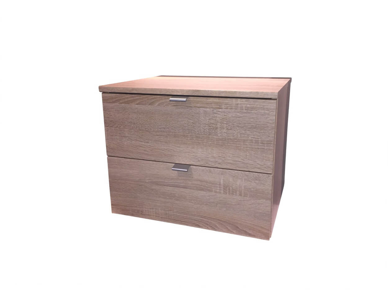 Chevet 2 tiroirs, corps en imitation chêne Sonoma M1, faces en imitation chêne Sonoma M1, intérieur en imitation bouleau Z1, poignées en alu mat, pieds 324 noir
