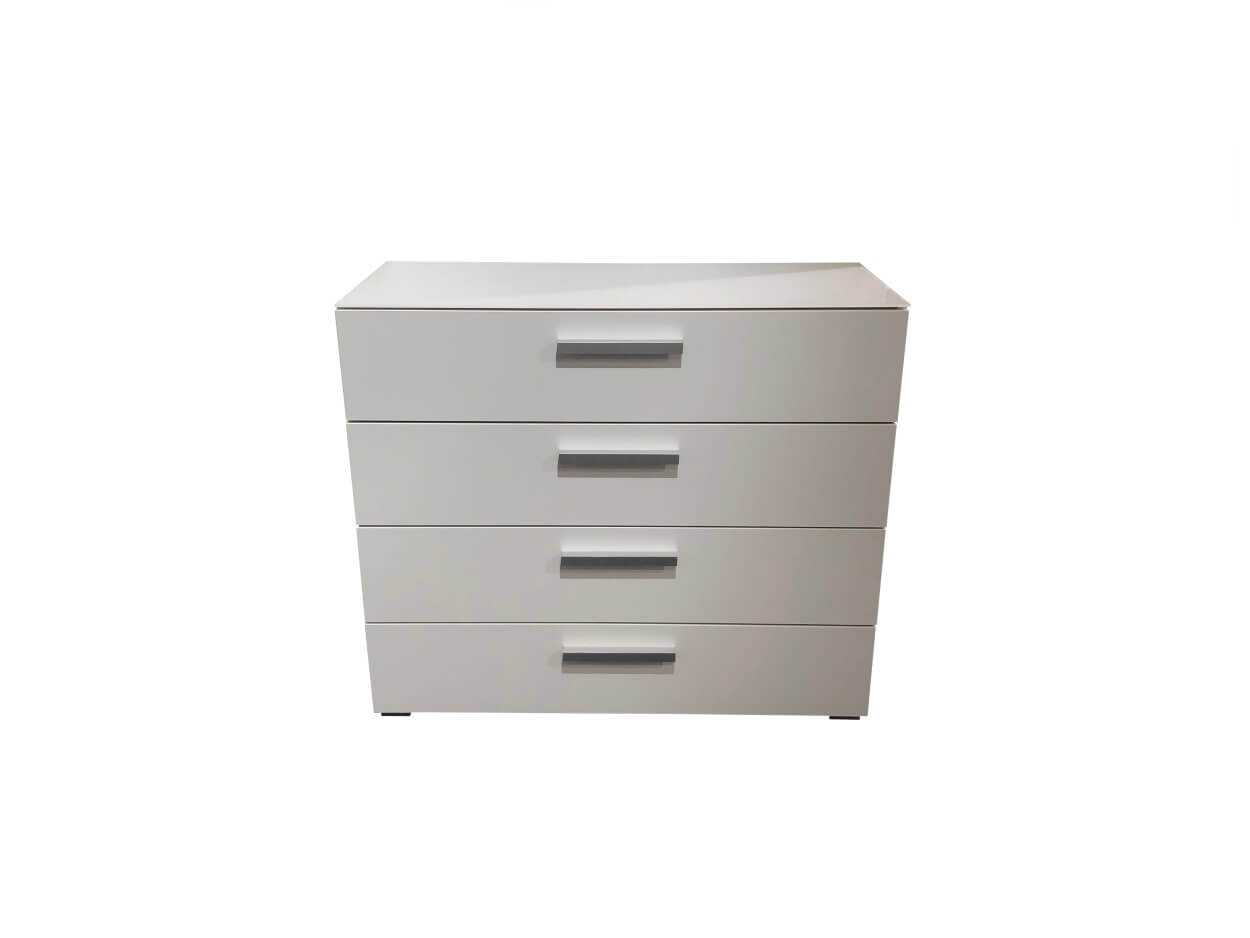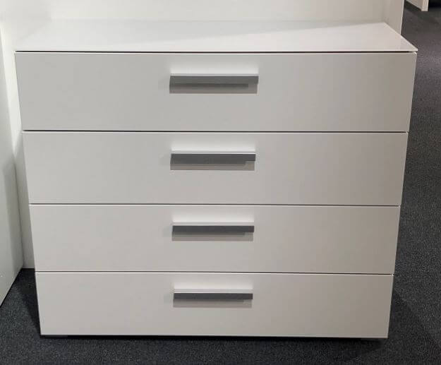 Commode 4 tiroirs, corps blanc alpin, faces blanc, poignées alu