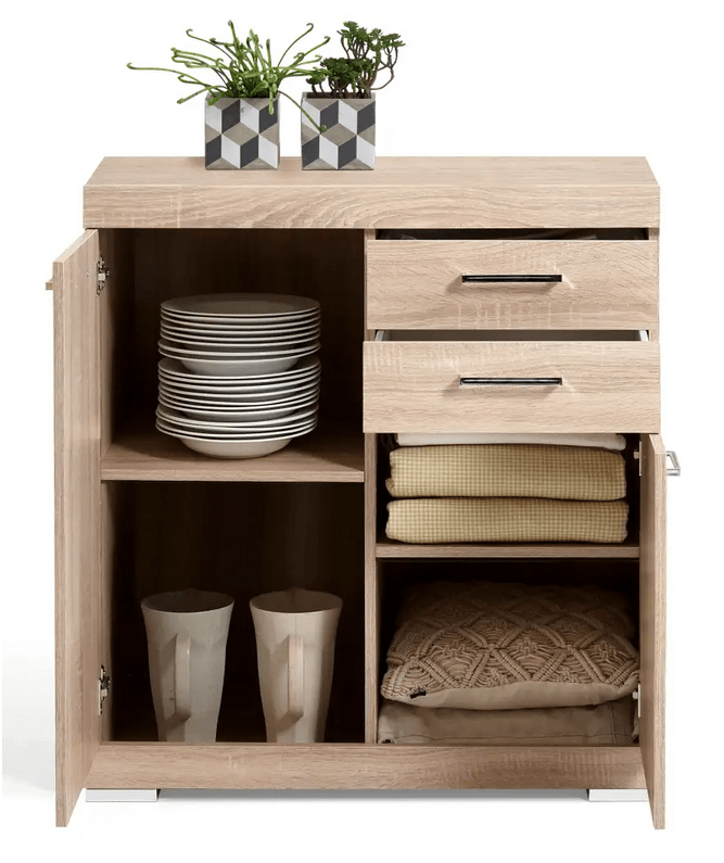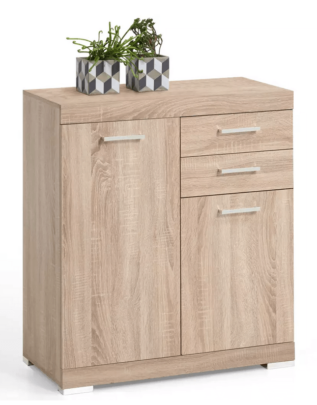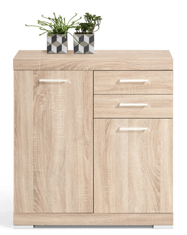 Commode 2 portes et 2 tiroirs en imitation chêne