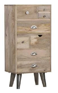Commode 8 tiroirs en bois manguier massif nature, teinté et laqué, pieds en métal, teinté argent, laqué