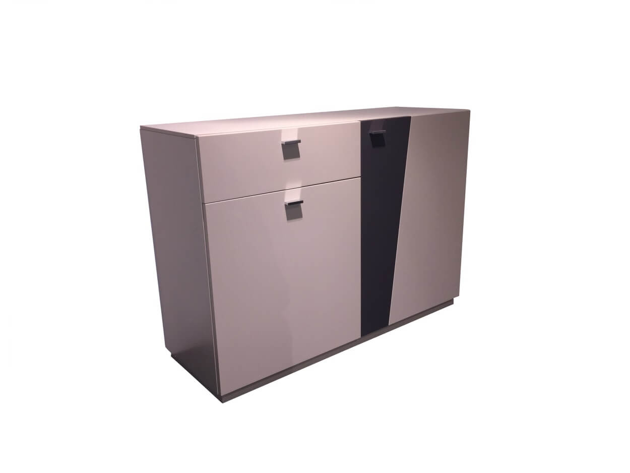 Commode 2 portes, 1 tiroir, couleur laque Sahara, accent laque gris ardoise, poignées B