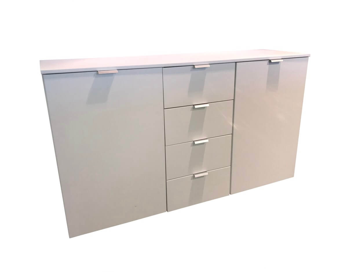 Commode 2 portes, 4 tiroirs, corps + faces blanc polaire
