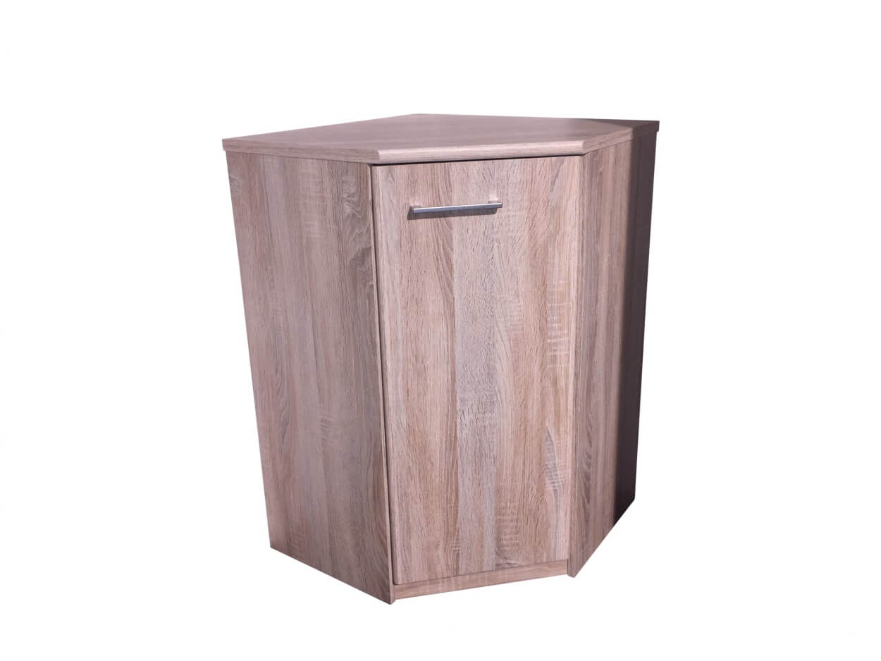 Commode d'angle 1 étagère, ferrure à droite, bois imitation chêne structuré