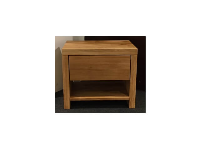 Table de nuit 1 tiroir avec fermeture automatique amortie et 1 rayon, bois chêne massif sauvage , huilé naturel