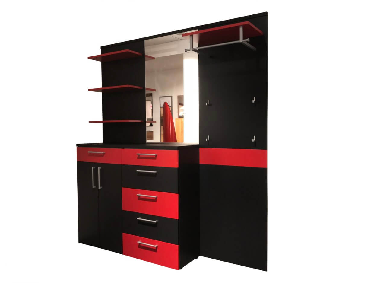 Vestiaire, corps laque anthracite, faces laque rouge, métal argenté mat