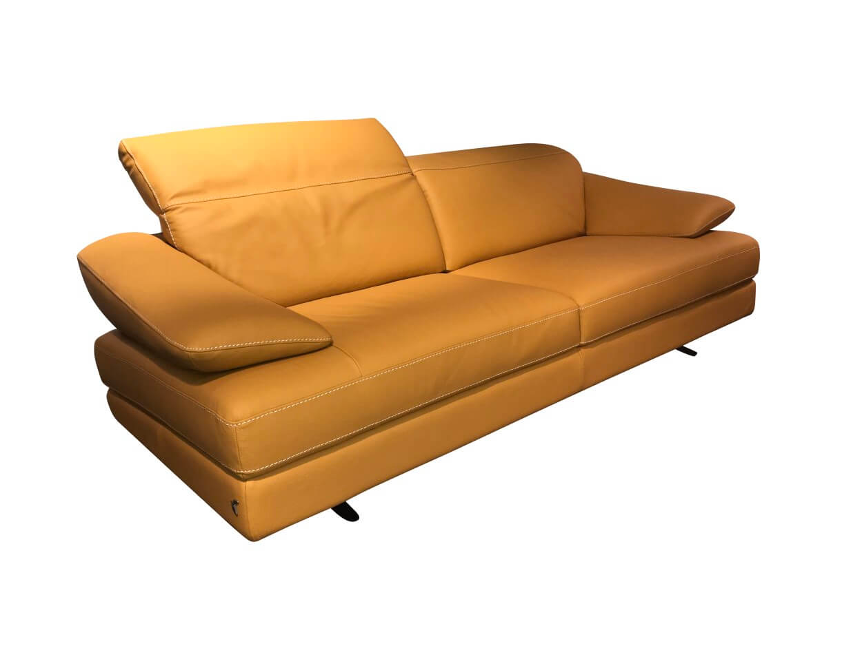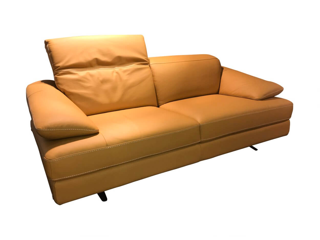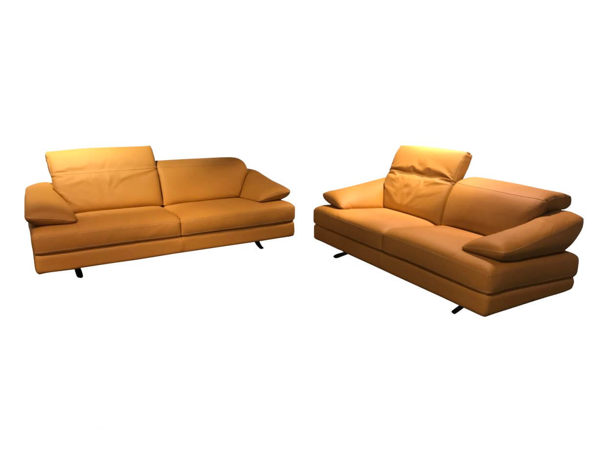 Salon en recouvrement cuir TG 12 Bull, couleur Senape, surpiqûres Natural, dureté standard, pieds PM 2031