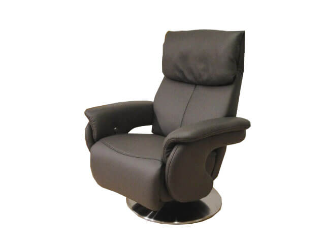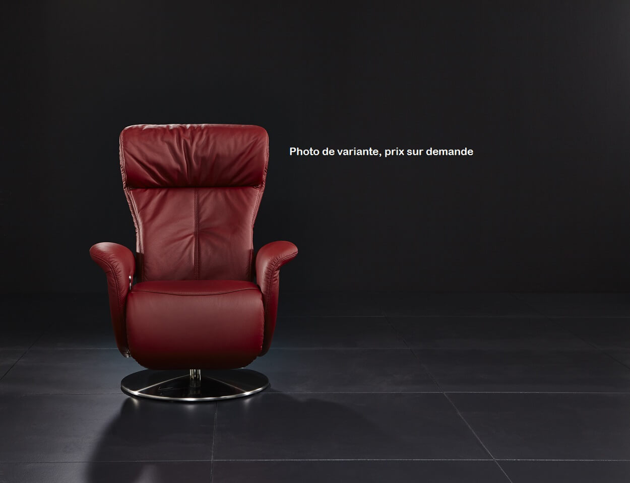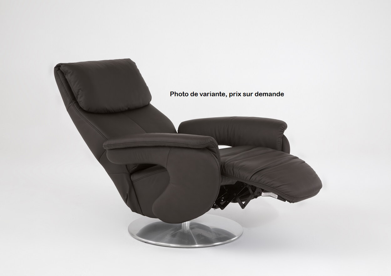 Fauteuil relax manuel en cuir Longlife Rustika Zinn cat. 24, dureté Superlastic soft pour l'assise, rembourrage mousse à froid, piétement pivotant en Edelstahloptik