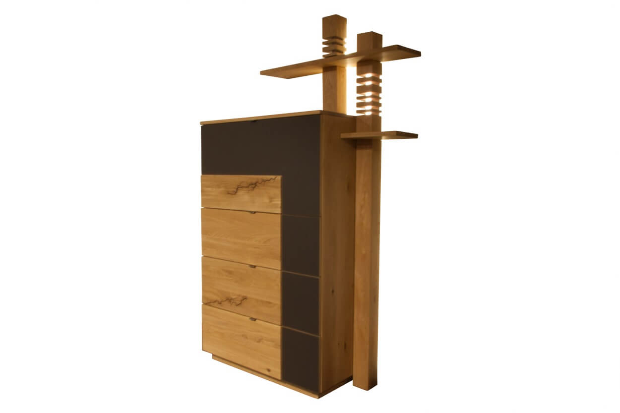 Meuble de bar en bois vieux chêne huilé, massif, faces parties en verer Walnussbraun